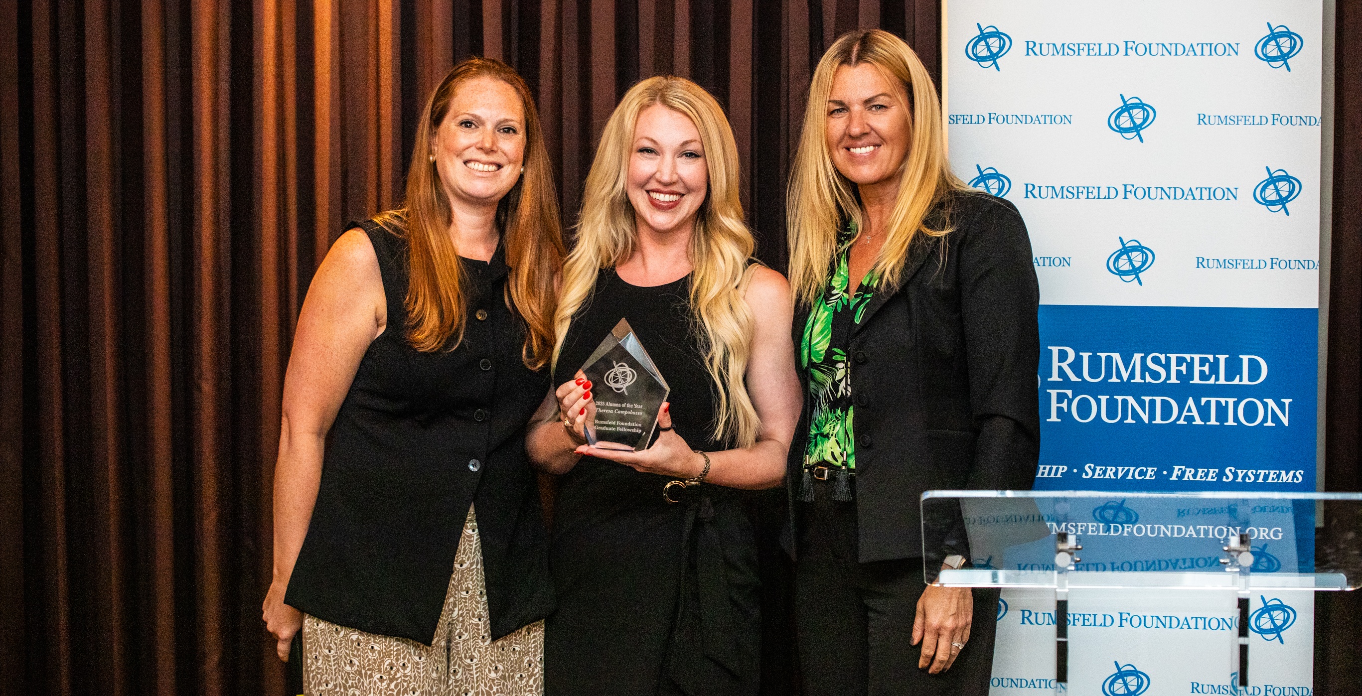 SEP 30, 2025As part of our Graduate Fellowship Program, the Foundation established the Alumni of the Year Award in 2022. The Award recognizes an alum who has demonstrated a commitment to public service, benefited the public good, and personifies the leadership qualities that the Rumsfelds hoped to encourage through the Fellowship's efforts.