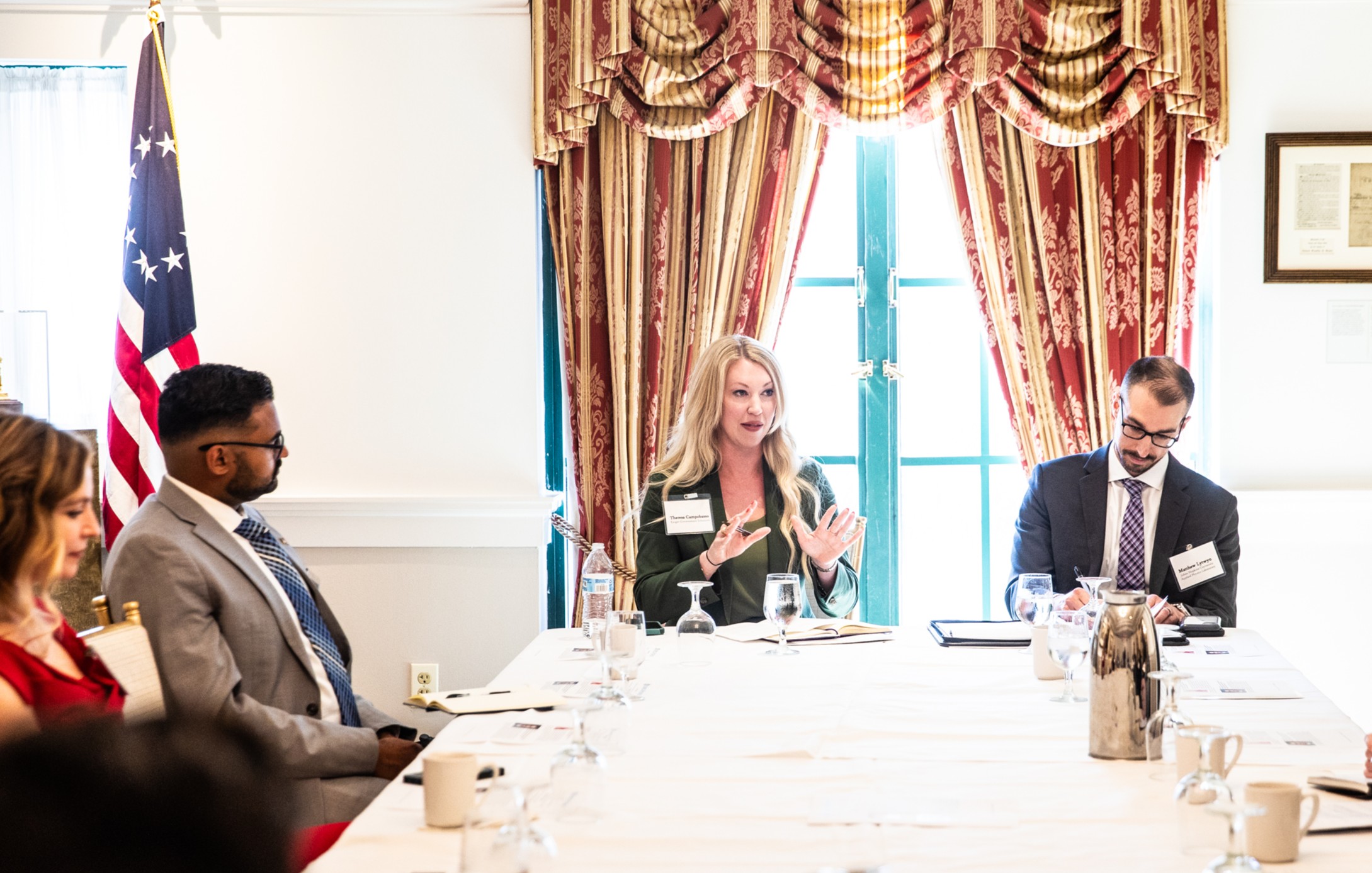 This fall, the Foundation was delighted to award the 2025 Alumna of the Year Award to Theresa Campobasso for her exceptional contributions to national security and her leadership across numerous fronts, including within our Fellowship Network. As a former Marine Corps intelligence officer and now a trailblazer in supply chain security, she has exemplified mission-driven leadership, inspiring optimism and high character throughout her professional journey.